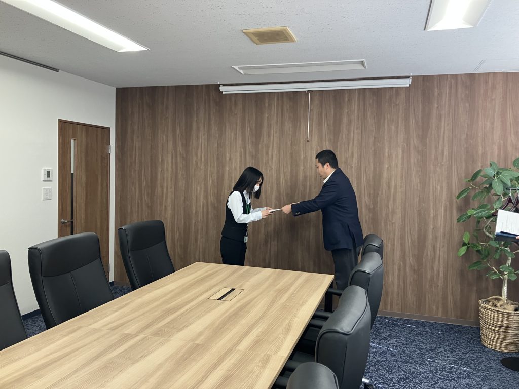 先日、今年度入社した新卒社員2名が半年間の研修期間を修了に伴い、正式配属の辞令式を開催いたしました。